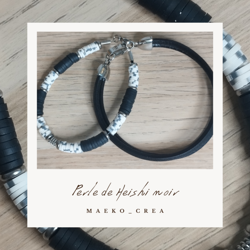 Les bracelets en perles heishi jouent la carte du contraste. Noir et crème pour une élégance sobre. Corail et crème pour une touche plus solaire et affirmée.